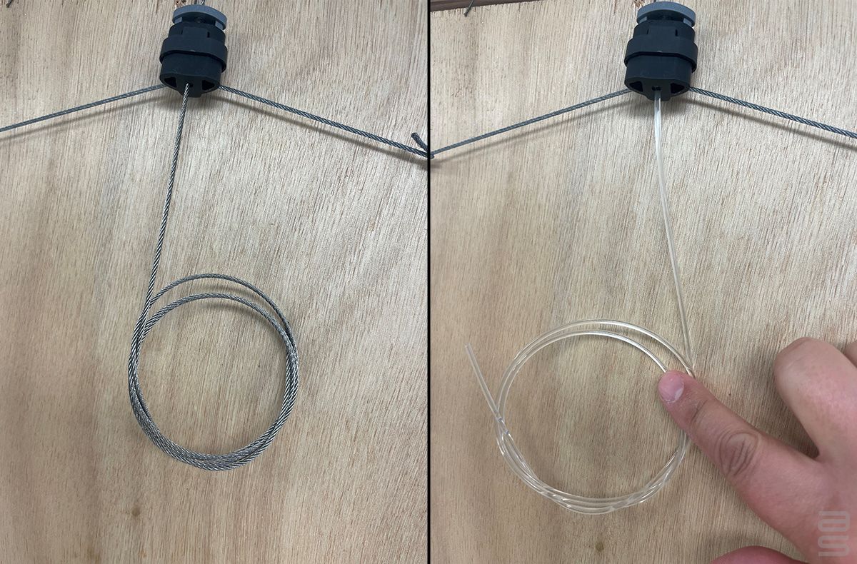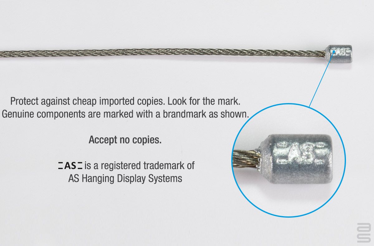 cables are used with hangers in order to adapt the picture hanging wire to a particular use. These are predominantly used with a C-Hanger for hanging cables from Contempo® Track, or alternatively from our Classic Wall and Classic Ceiling Tracks. Another use is matching the Barrel-End cable with our Panel Top Hanger, Drop-Ceiling Hanger, Edge Molding and Piers to be able to display artworks from office partitions, doors, drop ceiling and much more.