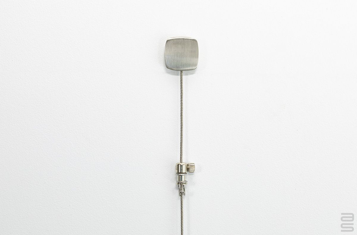 Solution sécuritaire pour accrocher vos œuvres si dans certains espaces il n’est pas possible d’installer un rail de suspension. Facile à installer. Choisissez votre crochet pour câble ICI (non inclus).