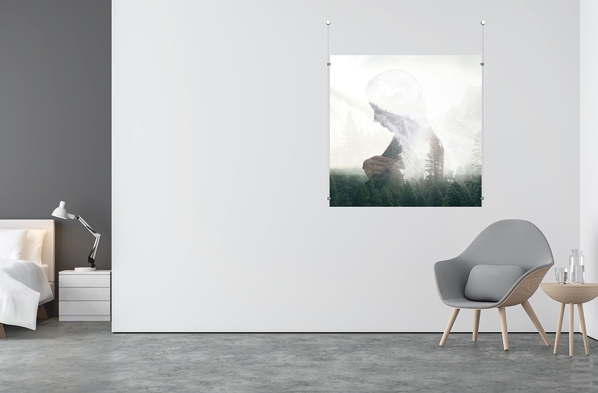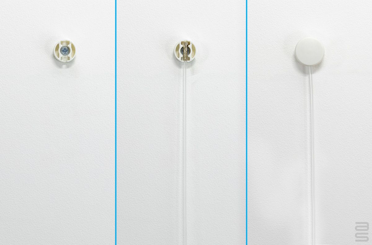 Tout d'abord, installez la fixation sur votre mur, insérez le câble Twist, puis placez le couvercle en plastique sur la fixation murale. Le tour est joué ! Réglez facilement la hauteur de votre objet suspendu. Une suspension murale élégante pour tout espace.