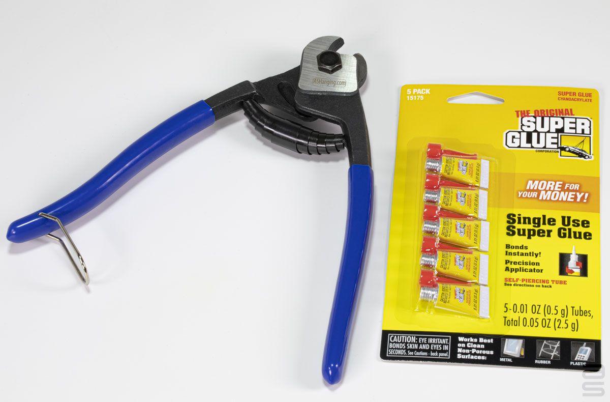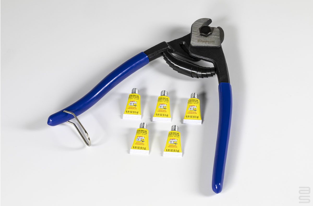 Ce kit est spécialement conçu pour vous aider à faire des coupes professionnelles dans les câbles d'AS Systèmes d'accrochage. Les pinces pour câble ou fil de métal vendues en grande surface sont conçues pour couper des fils de cuivre ou d'acier mou. Elles font un très mauvais travail de coupe avec les câbles d'acier inoxydable.