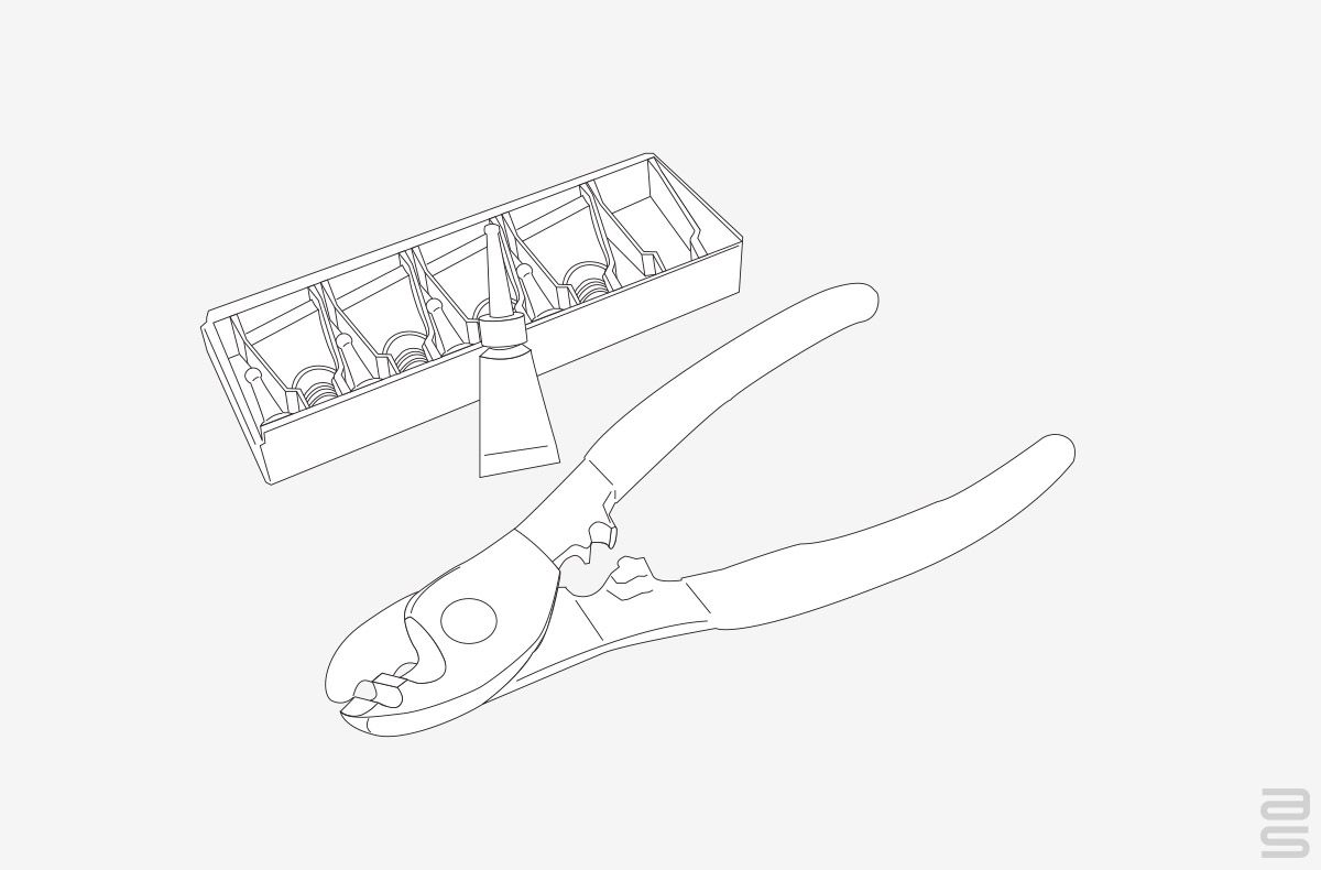 - Inclus : Une pince coupante, cinq (5) tubes de colle spécialisée et les instructions.